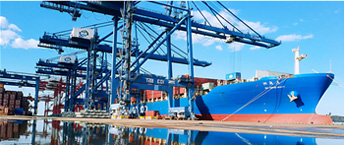 在美麗的渤海之濱,錦州灣北岸,中國(guó)北方緯度最高的專業(yè)化集裝箱海港碼頭坐落于此,這就是錦州新時(shí)代集裝箱碼頭有限公司。錦州新時(shí)代集裝箱碼頭有限公司成立于2001年8月,由中遠(yuǎn)海運(yùn)港口有限公司(51%)、錦州港股份有限公司(34%)、大連港集裝箱發(fā)展有限公司(15%)共同投資組建。